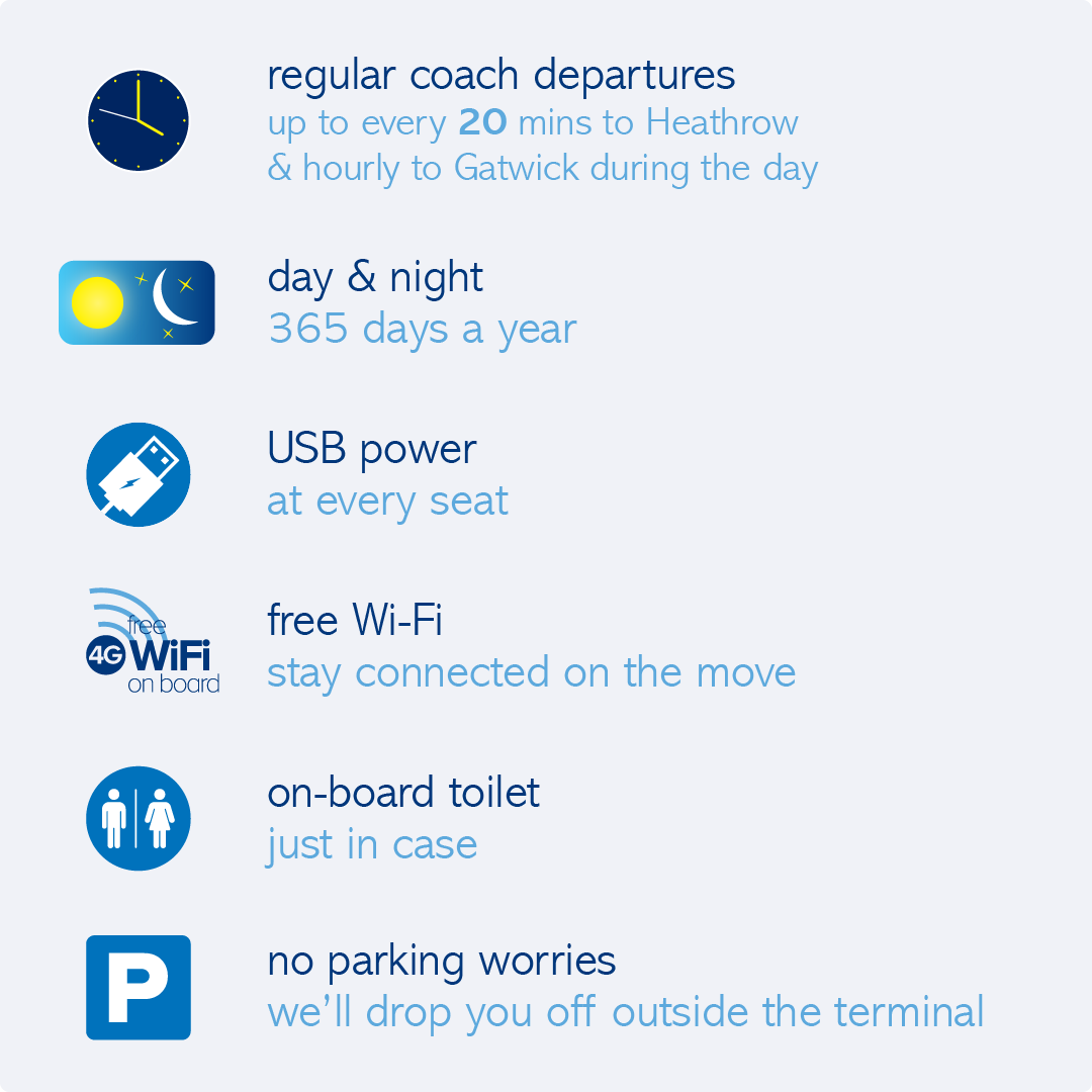 Don’t worry! Tickets booked for travel from either Heathrow or Gatwick airport may be used up to 24 hours before or after the service you have booked for. For travel from Oxford to Heathrow and Gatwick, your ticket may be used up to 2 hours before or after the service you have booked for. In both instances however, no seat can be guaranteed.