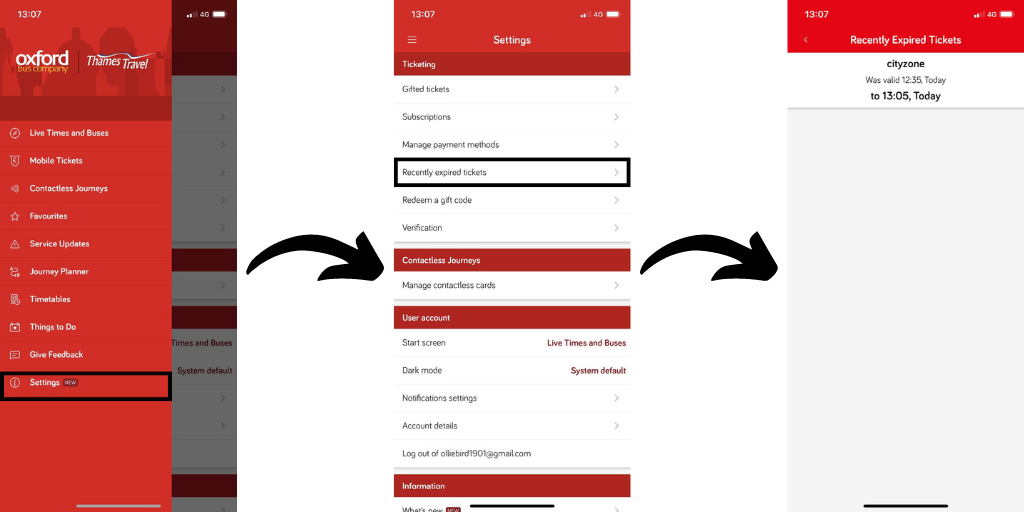 To access your recently expired tickets on the Oxford Bus app: