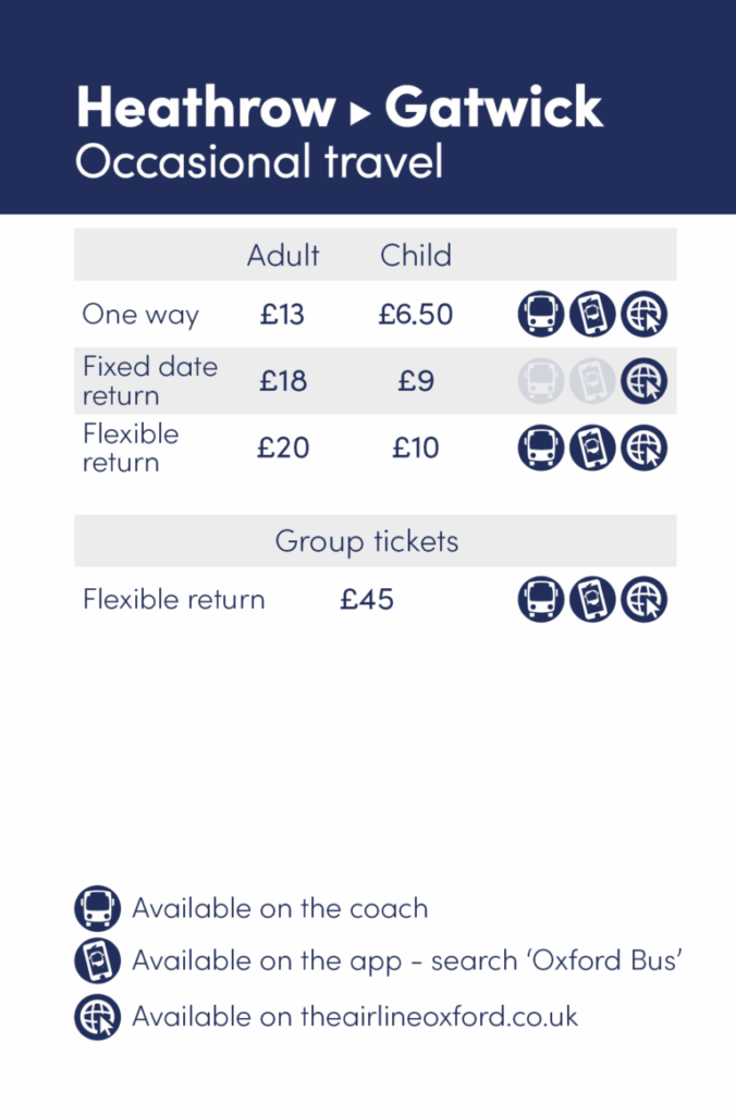 The airline is the fastest and most frequent coach service between Heathrow Airport and Gatwick Airport, with great-value fares starting at just £13.